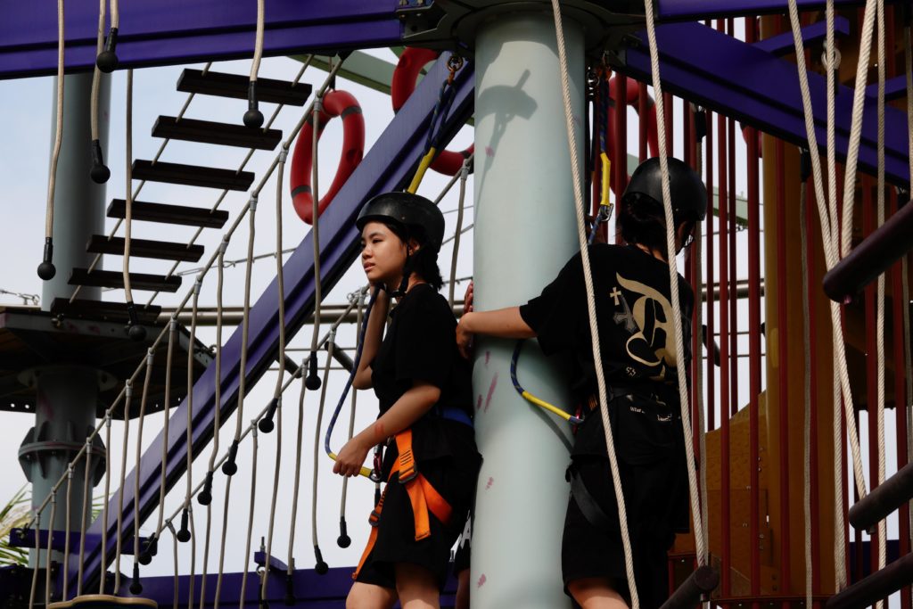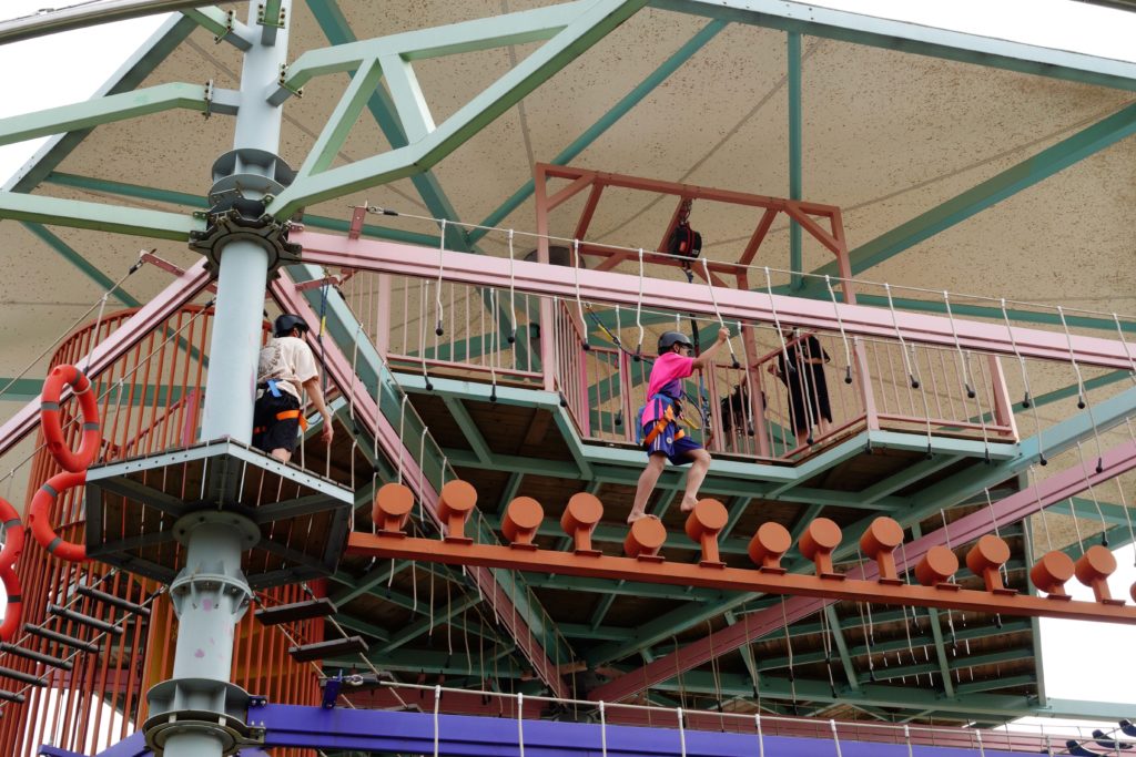 L’après‑midi a été consacré aux jeux aquatiques et aux activités libres. Certains enfants ont choisi de profiter des bassins et des jeux d’eau, tandis que d’autres se sont lancés dans l’accrobranche, installé sur une grande structure métallique impressionnante. Entre éclats de rire, défis personnels et entraide, chacun a vécu un moment de liberté et de plaisir qui restera longtemps gravé dans les mémoires.